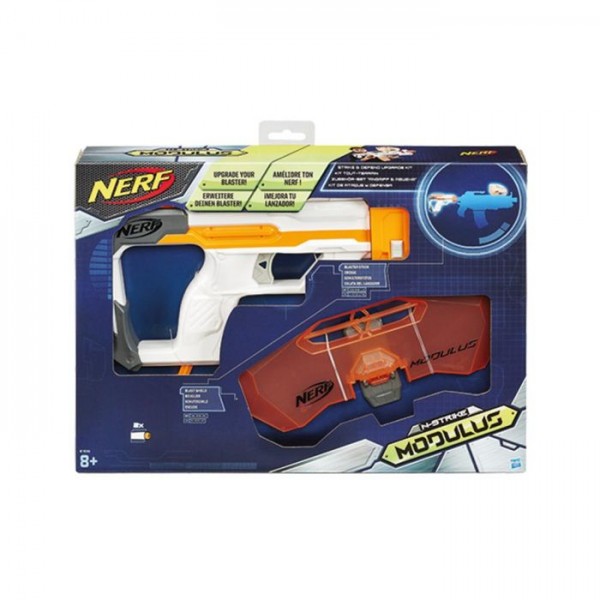 Doe een upgrade van je gevechtsmateriaal met deze Nerf Modulus Strike and Defend Kit! Met een schoudersteun voor extra precizie en een gezichtsmasker om je gezicht te beschermen.