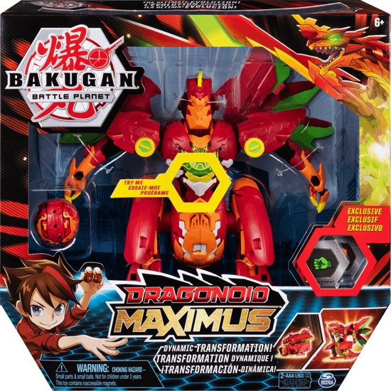 De krachtigste Bakugan in het universum is gearriveerd: Dragonoid Maximus! Deze ultrakrachtige Bakugan-draakfiguur van 20 cm hoog brult tot leven met een epische transformatie vol licht en geluid. Dragonoid Maximus komt met de exclusieve Titan Dragonoid Bakugan-bal (inbegrepen)! Laat die bovenop Dragonoid Maximus vallen en kijk hoe hij explodeert tot zijn meest krachtige evolutie - Dragonoid Maximus springt open met een fel gebrul en de krachtkern op zijn borst gaat branden!Ausverkauft