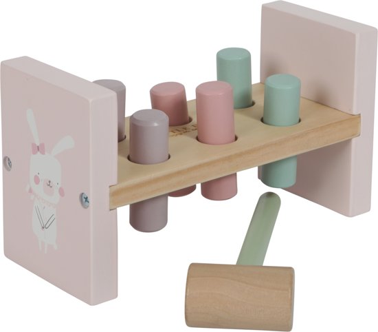 Deze vrolijke hamerbank van Little Dutch is een goede manier om de hand- oog coördinatie van uw kindje te stimuleren. Sla de staafjes door de hamerbank met de houten hamer, draai de bank vervolgens om en begin weer opnieuw! Met 6 gekleurde Adventure Pink staafjes is dit een zeer goede oefening voor de motoriek van je kindje.Sold out