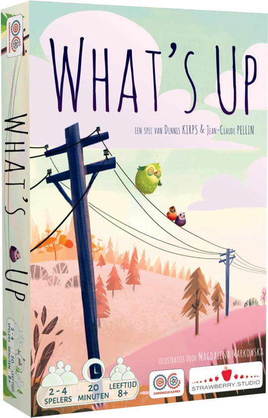 What's Up is een leuk en snel spelletje dat je als je het eenmaal gespeeld hebt niet meer weg wilt leggen. In What's Up verzamel je setjes van van verschillende kleuren vogels door kaarten te draaien. Wie het eerst een bepaald aantal sets heeft verzameld wint het spel.Uitverkocht